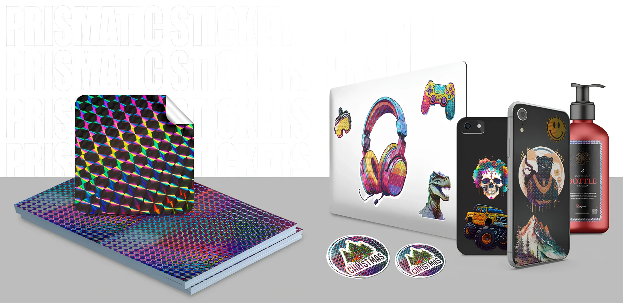 Prismatic stickers are renowned for their mesmerizing and dynamic appearance. As light interacts with the sticker, it creates a dazzling array of colours that seem to dance and change as the viewing angle shifts, resulting in a captivating and eye-catching effect.