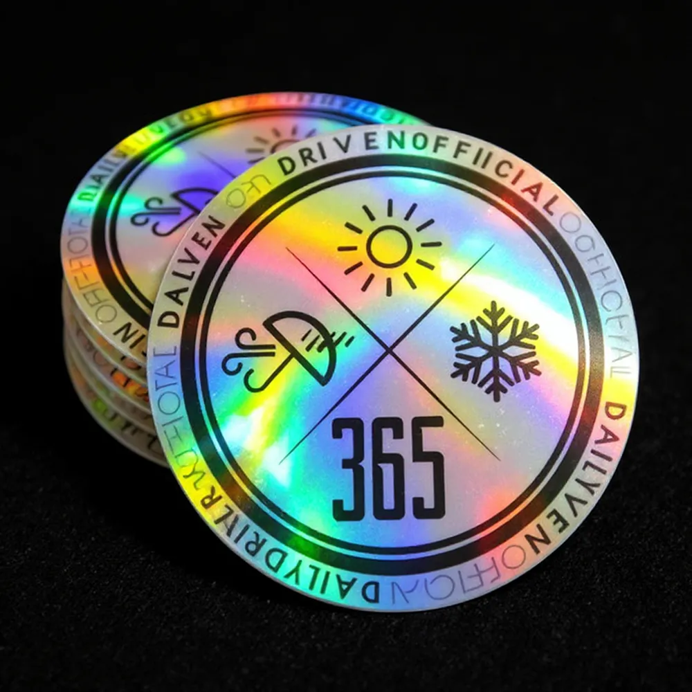 Round holographic stickers – waterproof, durable, and designed with a rainbow metallic shine for standout logos, labels, and packaging.